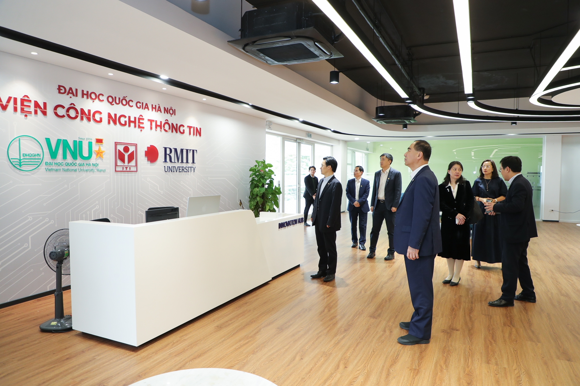 Về phía ĐHQGHN có PGS.TS. Nguyễn Hiệu - Phó Giám đốc thường trực, PGS. TS Lê Tuấn Anh - Trưởng Ban Hợp tác và Phát triển, PGS.TS Nguyễn Hà Nam - Phó Trưởng Ban Khoa học và Đổi mới sáng tạo, GS.TS Hoàng Anh Tuấn - Hiệu trưởng Trường ĐH Khoa học Xã hội và Nhân văn, PGS.TS Ngạc An Bang - Phó Hiệu trưởng Trường ĐH Khoa học Tự nhiên, GS. TS Chử Đức Trình - Hiệu trưởng Trường ĐH Công nghệ, PGS.TS Hà Lê Kim Anh - Phó Hiệu trưởng Trường ĐH Ngoại ngữ.