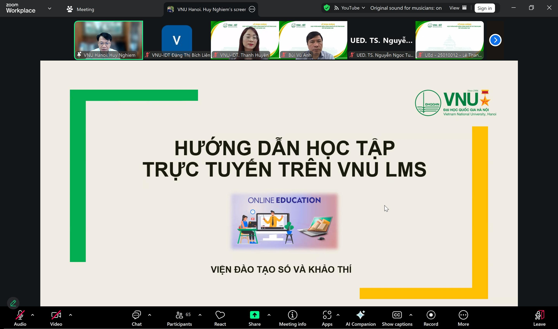 Buổi lễ được tổ chức theo hình thức trực tuyến qua Zoom với sự tham dự của ban lãnh đạo Viện, lãnh đạo các phòng chuyên môn, đội ngũ giảng viên, cán bộ hỗ trợ kỹ thuật cùng đông đảo sinh viên trong toàn ĐHQGHN đăng ký học tập trong học kỳ này.