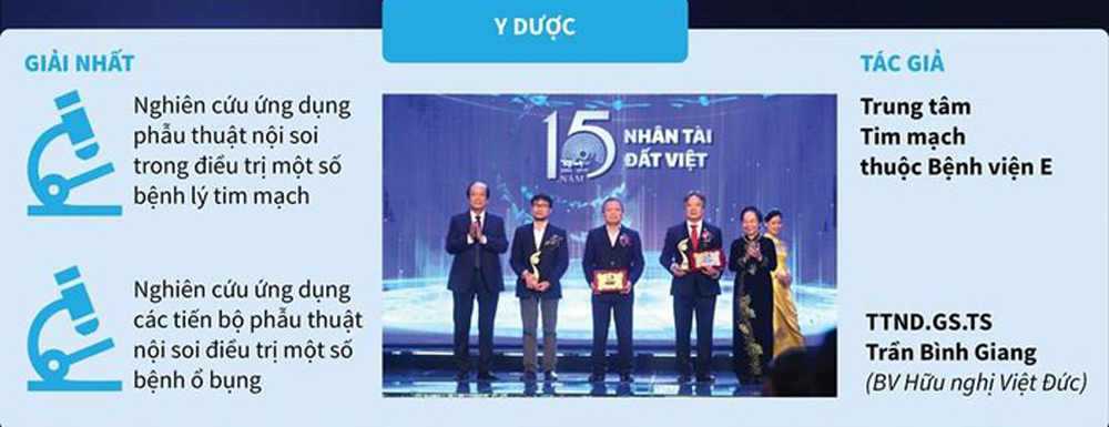 Chủ nhiệm Khoa Y Dược, giám đốc Bệnh viện E GS.TS Lê Ngọc Thành và Phó Chủ nhiệm Khoa Y Dược, Giám đốc Bệnh viện Việt Đức Trần Bình Giang nhận Giải thưởng Nhân tài Đất Việt năm 2019