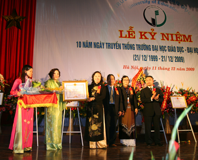 Bằng khen của Thủ tướng Chính phủ mà TS. Nguyễn Thị Nghĩa - Thứ trưởng Bộ GD&ĐT thay mặt lãnh đạo Đảng, Nhà nước trao tặng cho Trường ĐH Giáo dục tại lễ kỷ niệm chính là sự ghi nhận những thành tích mà tập thể Nhà trường đã đạt được. Cũng trong dịp này, với những đóng góp cho sự nghiệp đào tạo cán bộ giáo dục các địa phương, Nhà trường còn được đón nhận Bằng khen của Chủ tịch UBND 8 tỉnh, thành phố gồm: Hà Nội, Hải Phòng, Đà Nẵng, Kon Tum, Yên Bái, Hải Dương, Bắc Giang, Lạng Sơn.