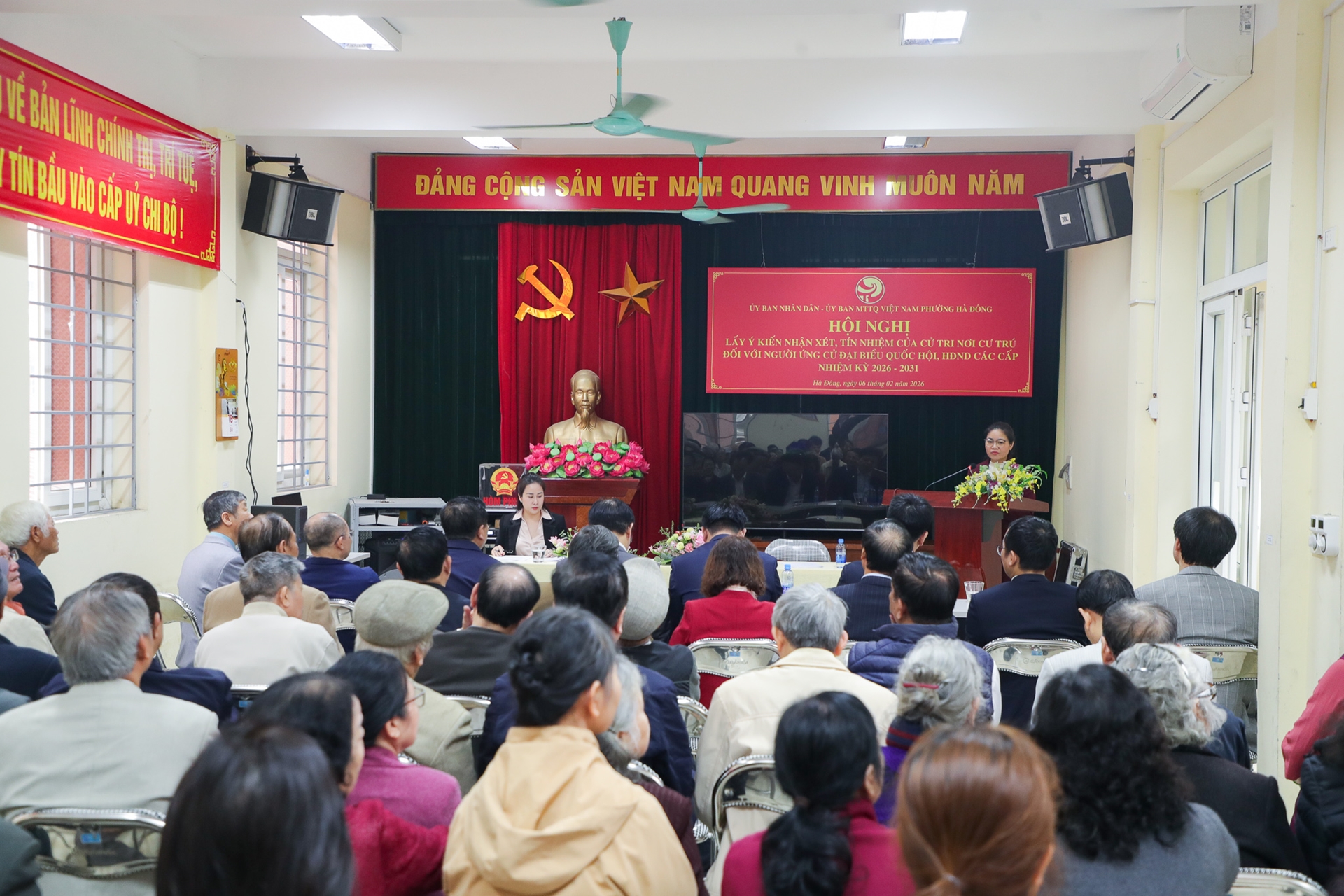 Hội nghị do đồng chí Nguyễn Thị Vân Anh, Chủ tịch Uỷ ban Mặt trận Tổ quốc phường Hà Đông chủ trì, với sự tham dự của 60 cử tri. Người được lấy ý kiến là đồng chí Hoàng Minh Sơn - Ủy viên Trung ương Đảng, Bí thư Đảng ủy, Giám đốc ĐHQGHN; đồng chí Trần Hồng Minh - Ủy viên Trung ương Đảng, Bộ trưởng Bộ Xây dựng ứng cử đại biểu Quốc hội nhiệm kỳ 2026 – 2031 và ông Nguyễn Thái Long – Phó Trưởng phòng Chính sách phát triển, Sở Tài chính, thành phố Hà Nội ứng cử đại biểu Hội đồng Nhân dân thành phố nhiệm kỳ 2026 – 2031.
