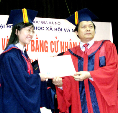 Lễ bế giảng cũng là dịp vinh danh những gương mặt thủ khoa các ngành học, những gương cán bộ Đoàn - Hội có thành tích xuất sắc trong phong trào chung, những sinh viên biết vượt lên hoàn cảnh khó khăn để học tập tốt. Năm nay, thủ khoa của Trường ĐHKHXH&NV là Lâm Minh Châu, sinh viên lớp CLC khoa Lịch sử với điểm số 9,33. Đây cũng là sinh viên duy nhất của Nhà trường được Giám đốc ĐHQGHN tặng Bằng khen vì có thành tích học tập tốt.