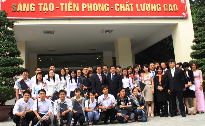 GS.TS Mai Trọng Nhuận – Giám đốc ĐHQGHN và ngài Lee Woo In – Phó Chủ tịch thường trực Quỹ POSCO TJ Park đã trao số học bổng này cho các sinh viên