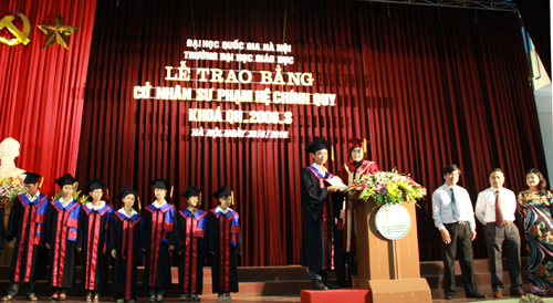 Phát biểu tại lễ trao bằng Cử nhân Sư phạm cho sinh viên Trường ĐH Giáo dục, TS. Phạm Quang Hưng – Phó Giám đốc ĐHQGHN đã ghi nhận và biểu dương những thành tích của thầy và trò nhà trrường đã đạt được trong thời gian qua, đặc biệt là những cố gắng của sinh viên khóa QH – 2006 – S. Phó Giám đốc ĐHQGHN mong rằng với hành trang tri thức mà sinh viên Trường ĐH Giáo dục tiếp thu được trong quá trình đào tạo, các tân Cử nhân Sư phạm của ĐHQGHN sẽ tự tin vững bước vào tương lai.