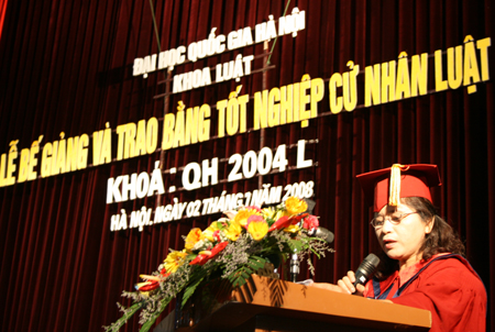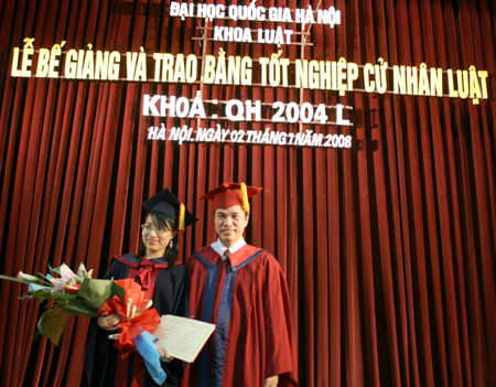 Tại buổi lễ, Phó Giám đốc Phạm Quang Hưng và Phó Chủ nhiệm Khoa Hoàng Thị Kim Quế cũng đã trao bằng khen và giấy khen cho những sinh viên đạt thành tích cao trong học tập và hoạt động đoàn hội: Thủ khoa tốt nghiệp Trần Thái Hà, lớp QH-2004-L-CLC với điểm trung bình chung học tập toàn khóa đạt 8,51; 28 sinh viên có kết quả học tập loại giỏi năm học 2007-2008; 8 sinh viên là cán bộ đoàn, cán bộ hội xuất sắc; 4 tập thể lớp xuất sắc: QH-2004-L-A, QH-2004-L-B, QH-2004-L-CLC, QH-2004-LKD.
