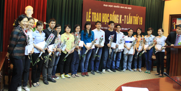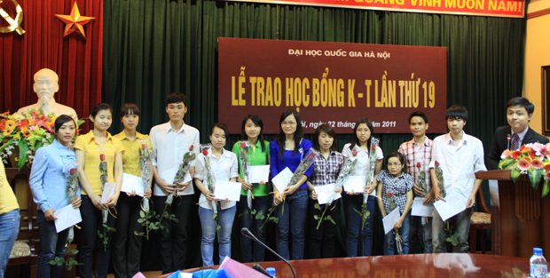 Học bổng K – T lần thứ 19 được trao cho 26 sinh viên thuộc 7 đơn vị đào tạo của ĐHQGHN, mỗi suất trị giá 2 triệu đồng.