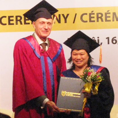 Trong số này có 28 tân thạc sĩ chuyên ngành Quản trị kinh doanh theo chương trình liên kết đào tạo giữa Khoa Quốc tế và ĐH HELP; 8 tân thạc sĩ chuyên ngành Quản trị kinh doah quốc tế theo chương trình liên kết đào tạo giữa Khoa Quốc tế, ĐH HELP và ĐH Edith Cowan; 36 tân thạc sĩ chuyên ngành Tài chính, Ngân hàng, Bảo hiểm (Việt Nam và Đông Nam Á) và 21 tân thạc sĩ chuyên ngành Nghiên cứu thị trường và Chiến lược Marketing theo chương trình liên kết đào tạo giữa Khoa Quốc tế và ĐH Nanntes. Các chương trình đào tạo thạc sĩ tại Khoa Quốc tế do đối tác cấp Bằng.