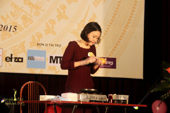 Thí sinh Phạm Mai Linh (SBD 171) trổ tài làm bánh ngọt ngay trên sân khấu