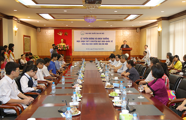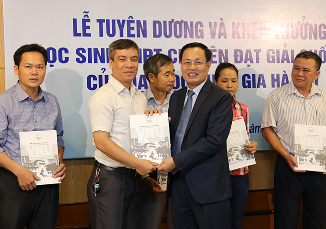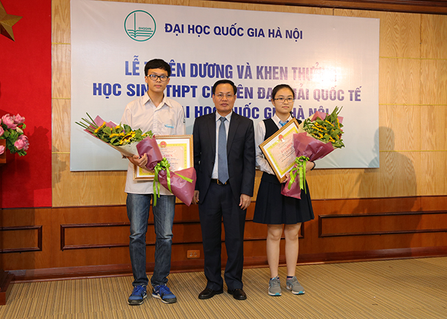 Phó Giám đốc ĐHQGHN trao Thư chúc mừng và cảm ơn của Giám đốc ĐHQGHN tới phụ huynh của các em học sinh đạt giải quốc tế