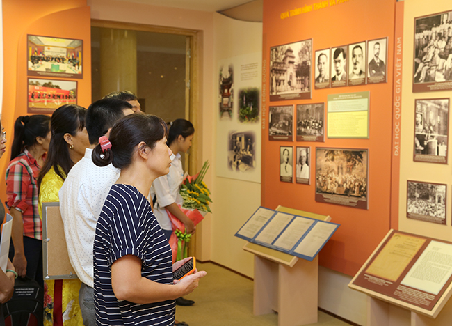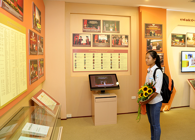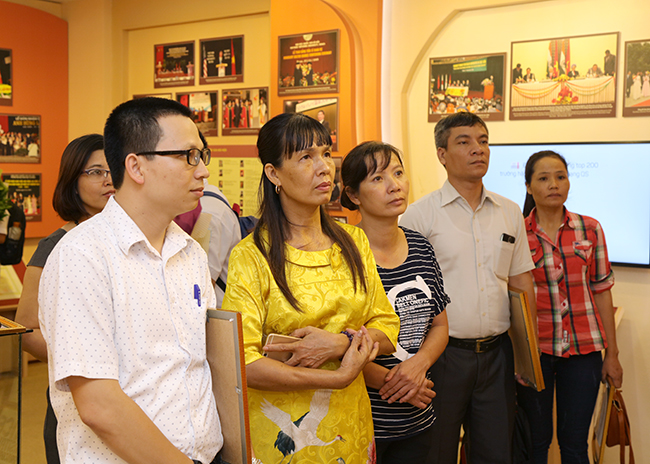 Các phụ huynh và học sinh đã được thăm, giới thiệu về Phòng truyền thống ĐHQGHN