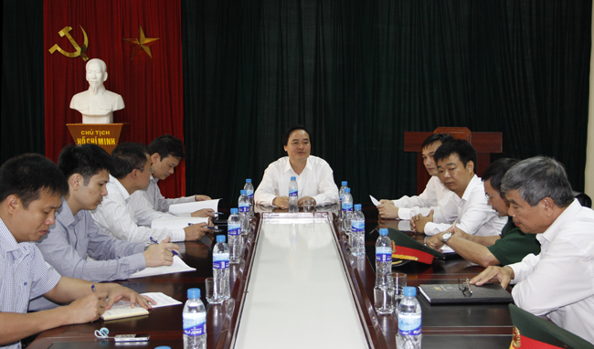 Giám đốc ĐHQGHN Phùng Xuân Nhạ làm việc với lãnh đạo Trung tâm Giáo dục Quốc phòng - An Ninh
