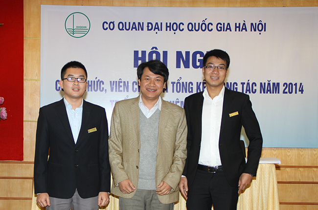 Bí thư Đảng uỷ Cơ quan ĐHQGHN Đinh Văn Toàn, Chánh Văn phòng ĐHQGHN Nguyễn Viết Lộc, Chủ tịch Công đoàn Cơ quan ĐHQGHN Mai Hoàng Anh đồng chủ trì Hội nghị