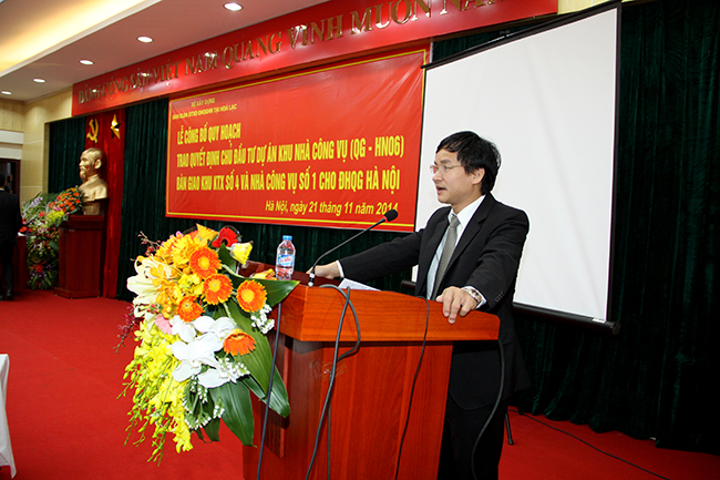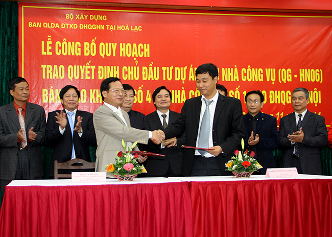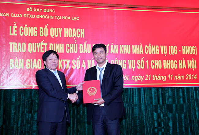 Thứ trưởng Bộ Xây dựng Cao Lại Quang trao quyết định chủ đầu tư dự án Đầu tư xây dựng khu nhà công vụ (QG-HN 06) cho ĐHQGHN