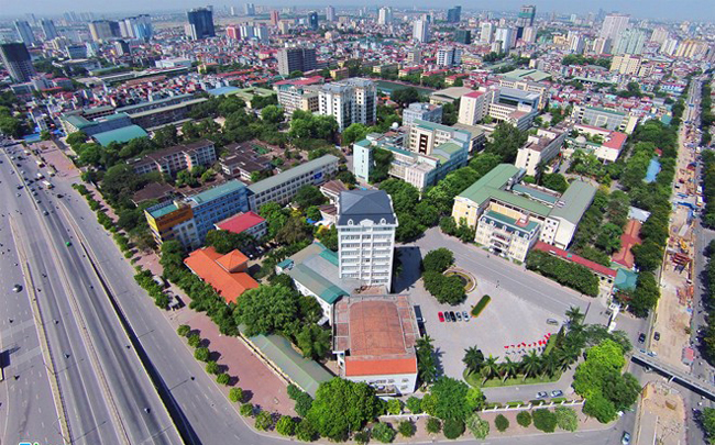 Năm nay, Đại học Quốc gia Hà Nội thống nhất dùng bài thi đánh giá năng lực xét tuyển đại học chính quy. Kỳ thi sẽ diễn ra từ ngày 30/5 – 3/6/2015. Ảnh toàn cảnh khu vực Nhà điều hành và các đơn vị đào tạo, nghiên cứu của ĐHQGHN tại 144 đường Xuân Thuỷ, quận Cầu Giấy, Hà Nội .