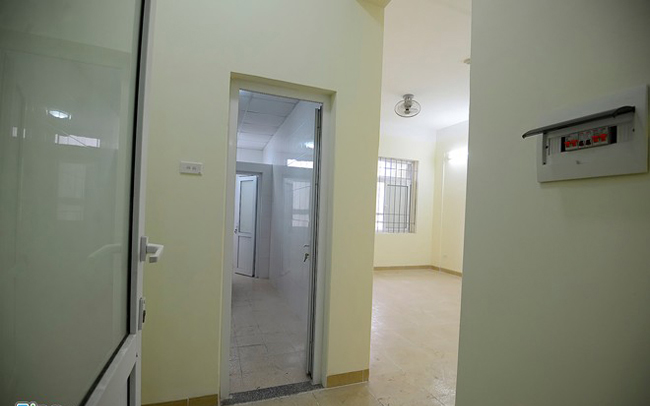 Phòng Ký túc xá Mỹ Đình của ĐHQGHN sạch sẽ và thoáng mát. Mỗi phòng rộng 42 m2, có 2 nhà vệ sinh khép kín, bình nóng lạnh, tủ và bàn ghế học tập cá nhân.