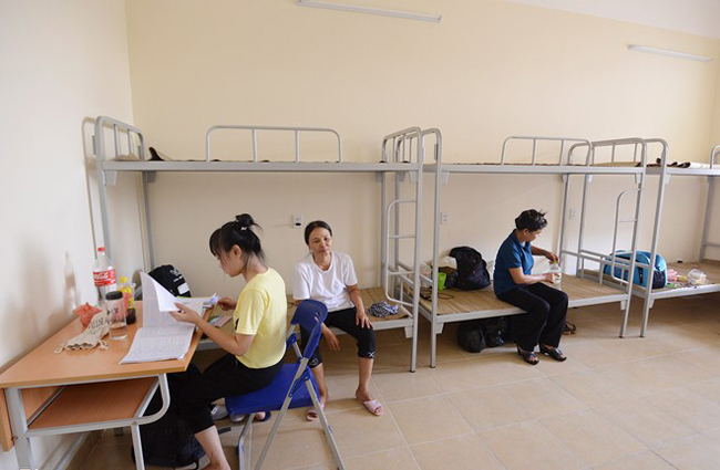 Những thí sinh đầu tiên có mặt tại ký túc xá Mỹ Đình, ĐHQGHN tranh thủ ôn lại bài tập theo cấu trúc đánh giá năng lực do ĐHQGHN công bố.
