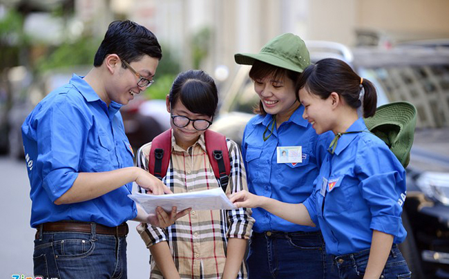 Đội tình nguyện viên đã có mặt tại các cụm thi tại ĐHQGHN để tư vấn tuyển sinh và tìm nhà trọ hỗ trợ thí sinh.