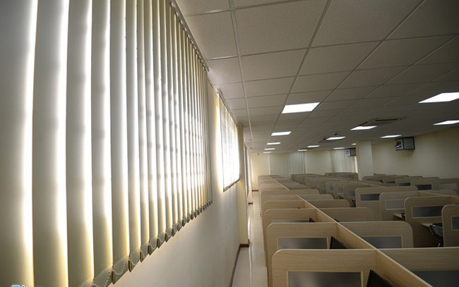 Hệ thống rèm cửa hiện đại, cửa sổ phòng thi khá thông thoáng, đảm bảo ánh sáng và không khí tự nhiên cho thí sinh.
