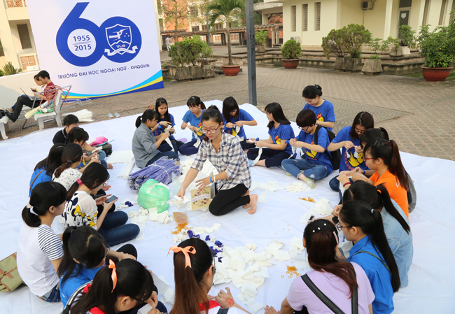 Thành viên các câu lạc bộ khẩn trương chuẩn bị cho màn kỷ lục tạo hình con số 60 từ 10.000 bông hoa giấy
