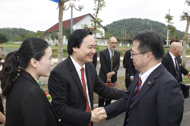 Giám đốc Phùng Xuân Nhạ giới thiệu PGĐ Nguyễn Hoàng Hải cùng lãnh đạo và cán bộ Ban Quản lý trường Đại học Việt – Nhật