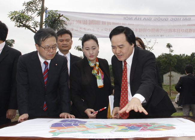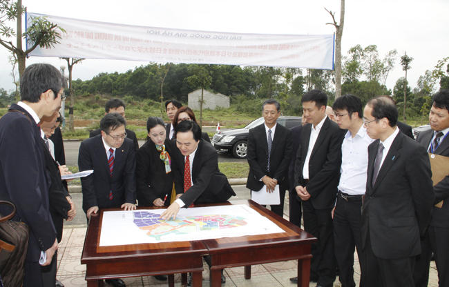 Giám đốc ĐHQGHN Phùng Xuân Nhạ giới thiệu về Dự án xây dựng trường Đại học Việt - Nhật với diện tích 75ha trong khuôn viên của ĐHQGHN tại Hòa Lạc