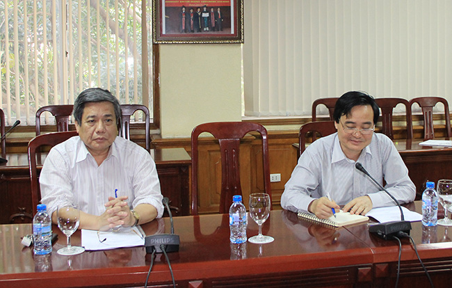 Chiều 8/11/2012, PGS.TS Phùng Xuân Nhạ, Ủy viên dự khuyết T.Ư Đảng - Phó Giám đốc Thường trực ĐHQGHN và GS.TSKH Vũ Minh Giang – Phó Giám đốc ĐHQGHN đã có buổi làm việc với ông Trần Xuân Hưu - Vụ trưởng Vụ Văn hoá, giáo dục, thanh niên, thiếu niên và nhi đồng Văn phòng Quốc hội và ông Ngô Mạnh Hải – Phó Vụ trưởng Vụ Tổ chức cán bộ, Bộ GD&ĐT để bàn về Nghị định và Quy chế hoạt động của ĐHQG.