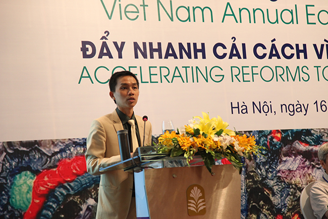 TS. Nguyễn Đức Thành - Viện trưởng Viện nghiên cứu Kinh tế và Chính sách, trưởng nhóm nghiên cứu trình bày Báo cáo thường niên Kinh tế Việt Nam 2017