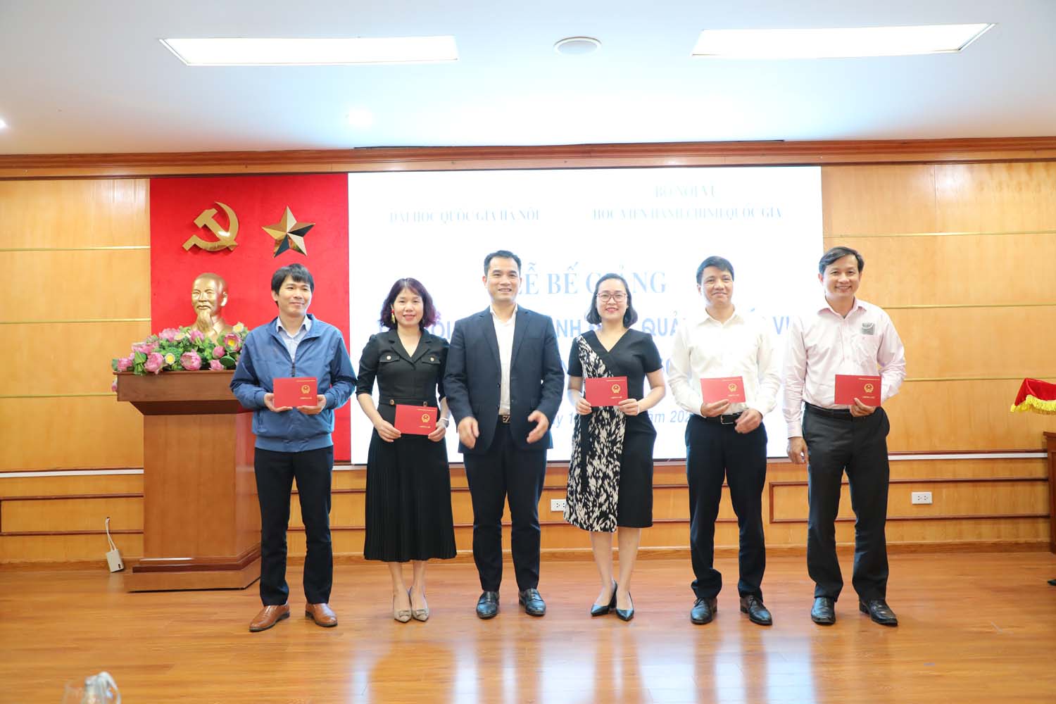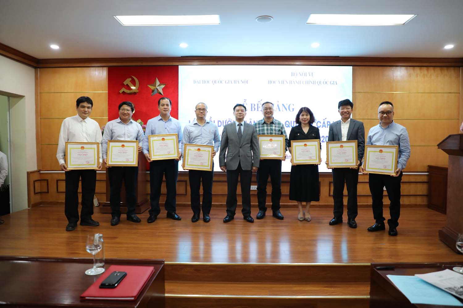 Đại diện Học viện Hành chính Quốc gia trao bang khen cho 10 học viên ĐHQGHN có kết quả học tập tốt toàn khóa học