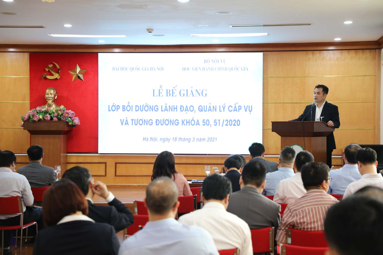 Phát biểutại lễ bế giảng, ông Tống Đăng Hưng, Phó Trưởng ban Quản lý bồi dưỡng, Học viện Hành chính Quốc gia cho biết: Trải qua 2 tháng học tập và rèn luyện chúng tôi ghi nhận tinh thần học tập của các học viên của ĐHQGHN rất chuyên nghiệp, sáng tạo, chất lượng.
