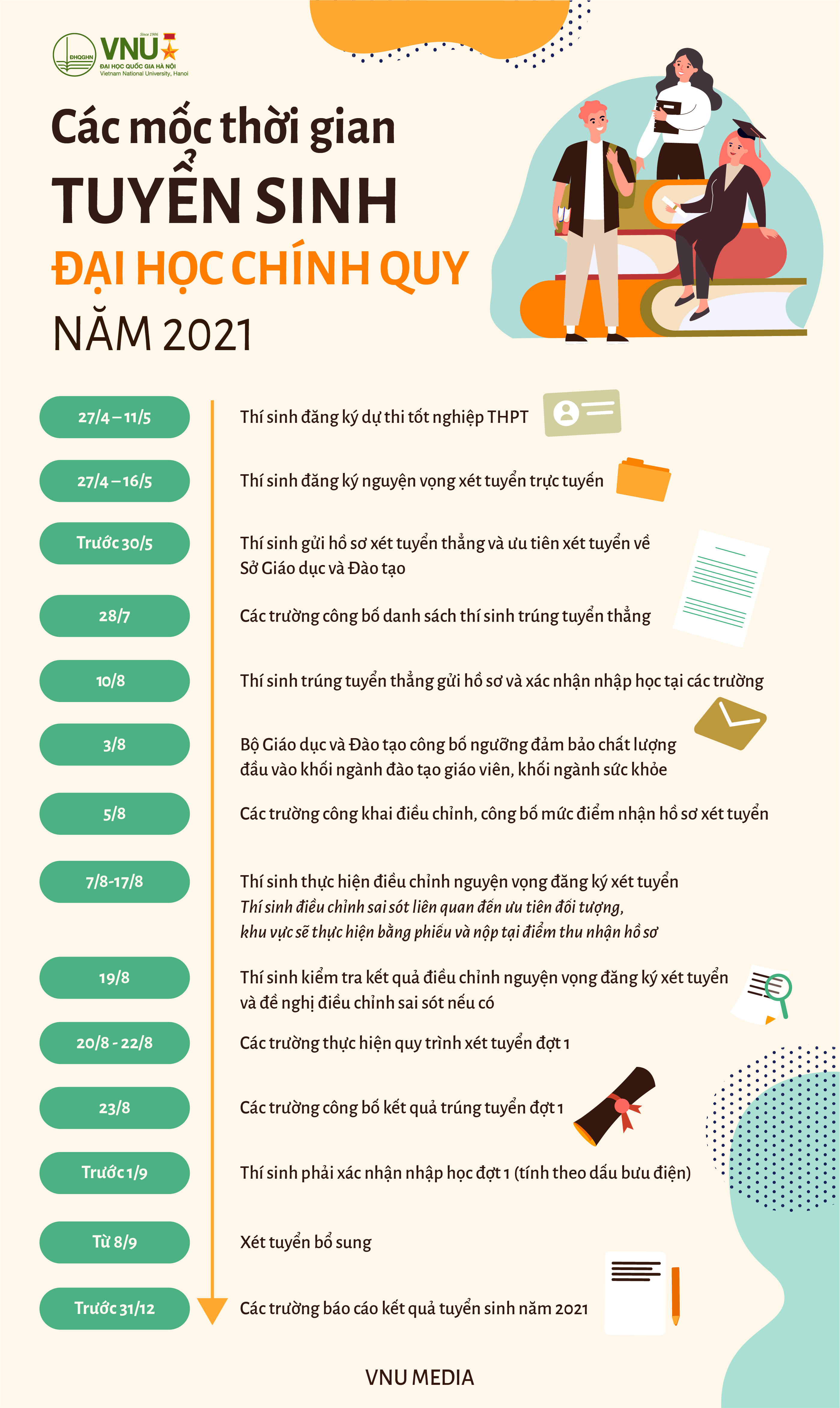Các mốc thời gian tuyển sinh đại học chính quy năm 2021