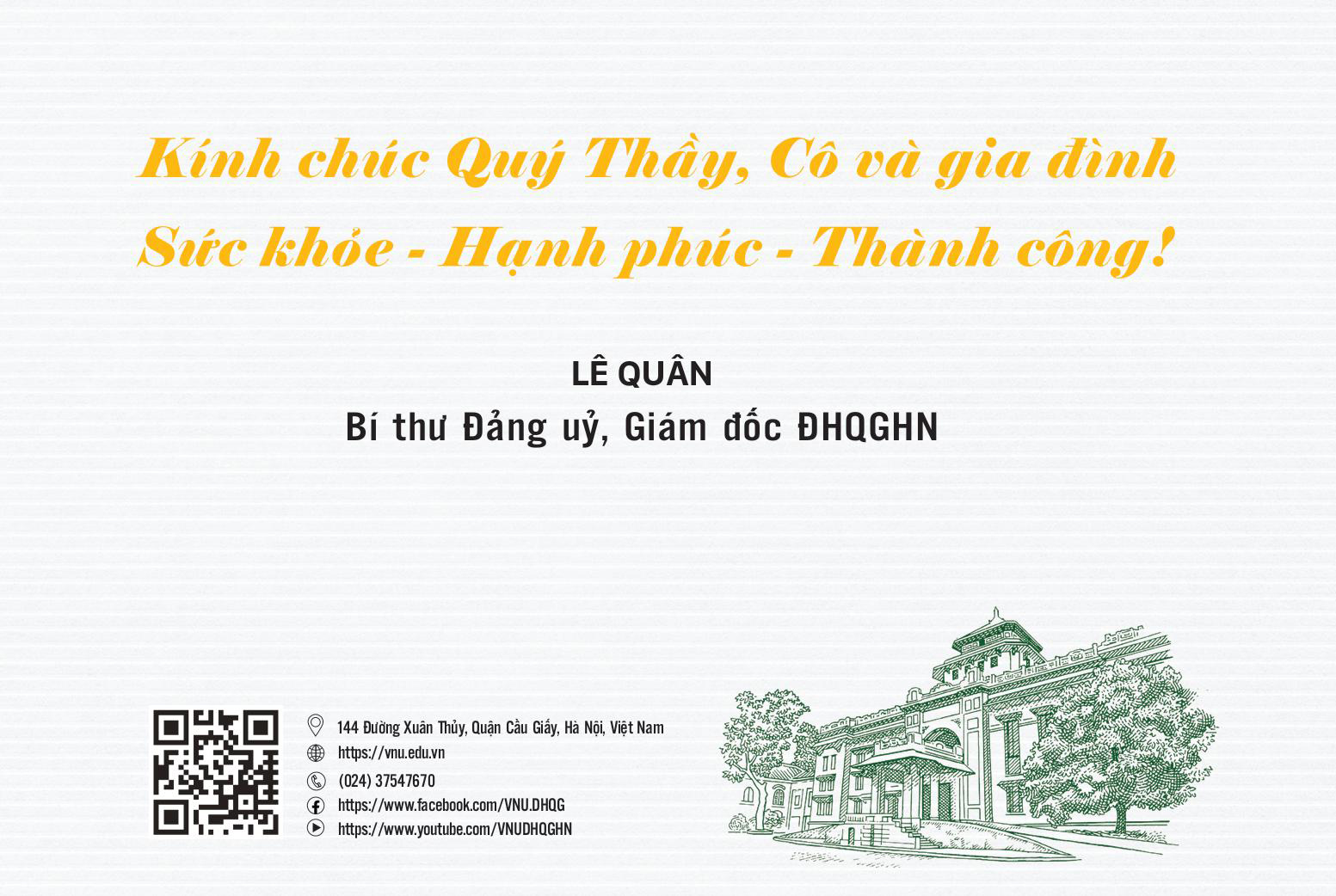Nhân ngày Nhà giáo Việt Nam 20/11, thay mặt Đảng ủy, Ban Giám đốc ĐHQGHN, tôi trân trọng gửi tới các giáo sư, cựu giáo chức, giảng viên, nhà khoa học, lãnh đạo quản lý, cán bộ viên chức, người lao động đã và đang công tác tại ĐHQGHN lời tri ân sâu sắc và lời chúc mừng tốt đẹp nhất.