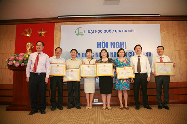 Giám đốc ĐHQGHN Phùng Xuân Nhạ trao bằng khen cho các nhóm nghiên cứu mạnh 2014
