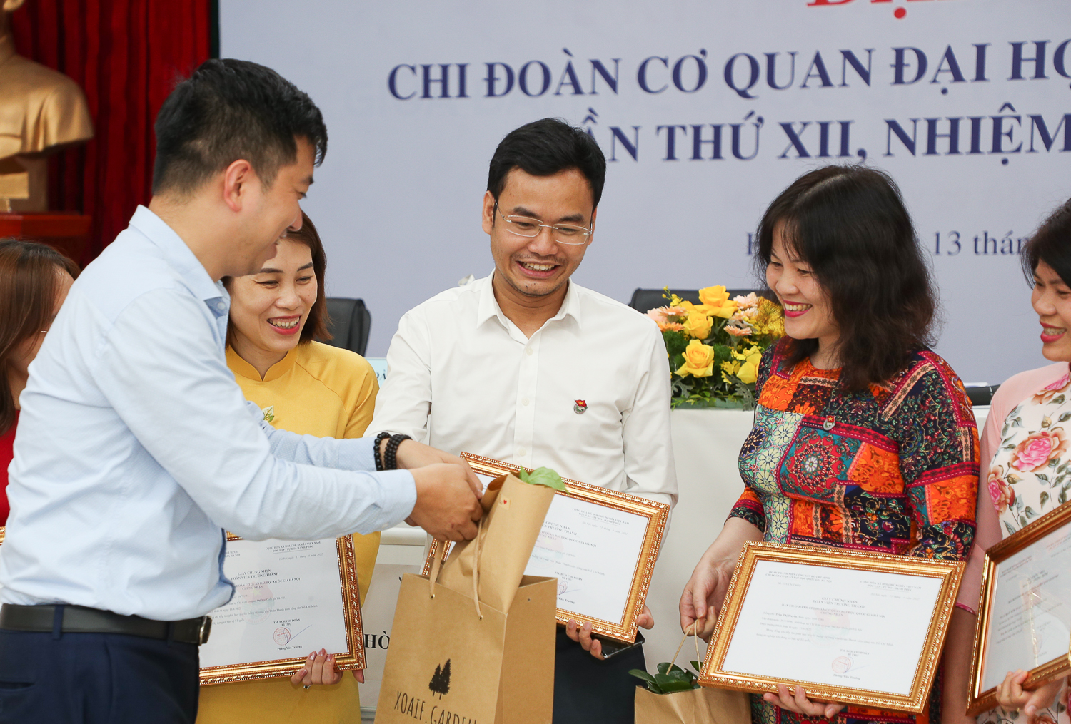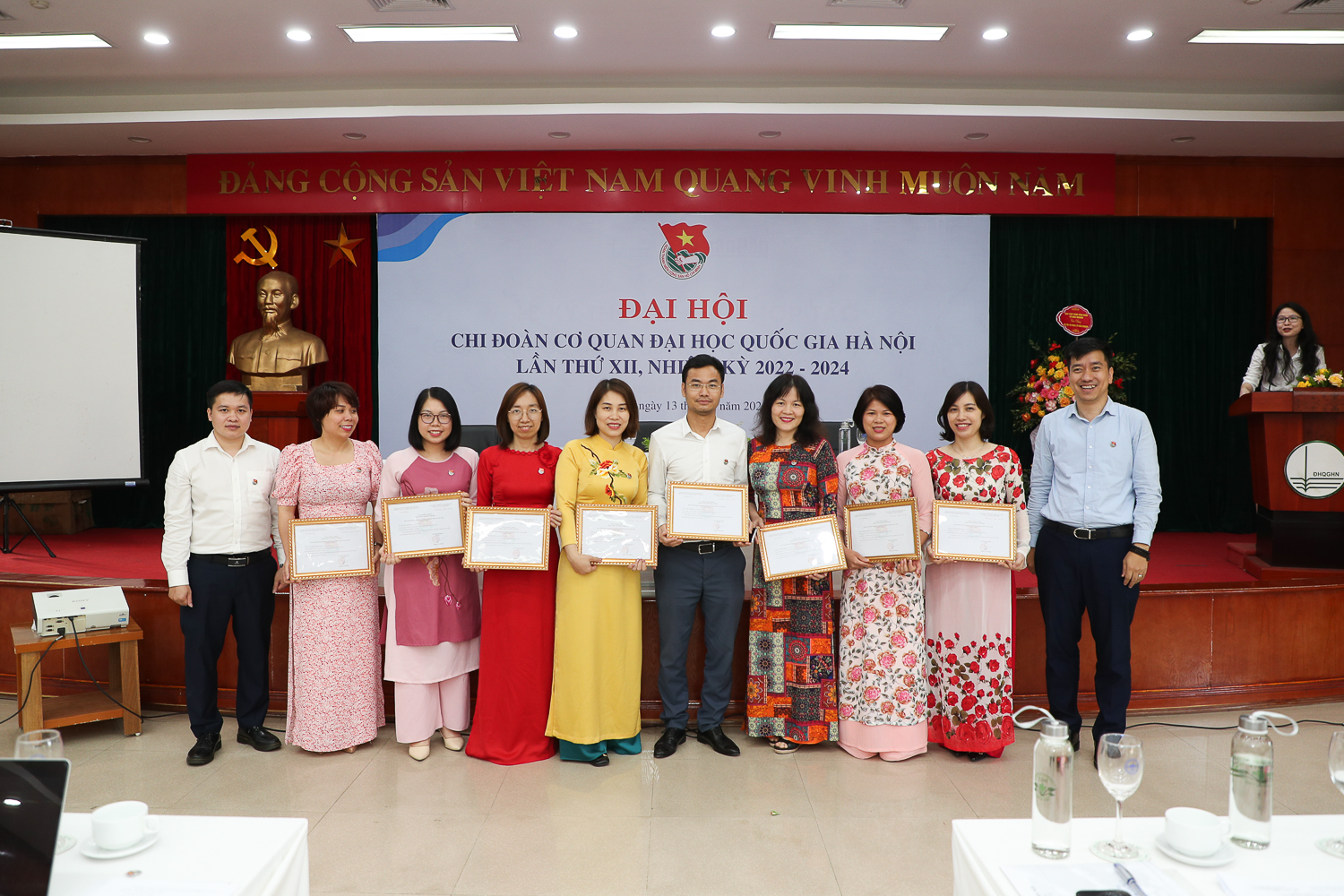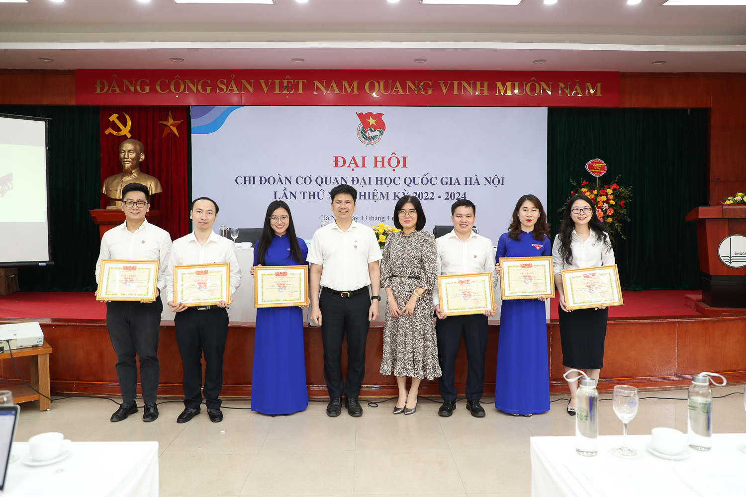 Trong khuôn khổ của đại hội, đồng chí Nguyễn Hiệu đã trao Giấy khen của Đoàn Thanh niên ĐHQGHN cho các đồng chí có thành tích xuất sắc trong hoạt động Đoàn nhiệm kỳ 2020-2022.