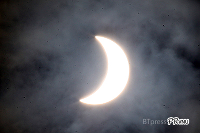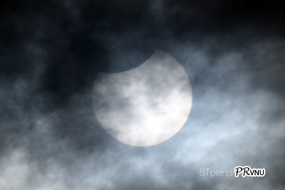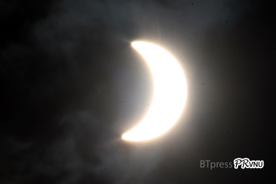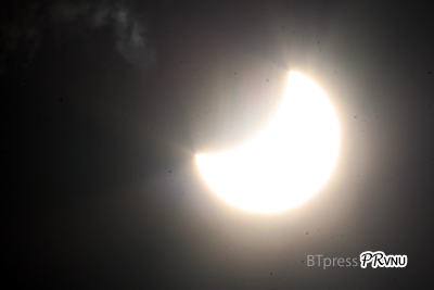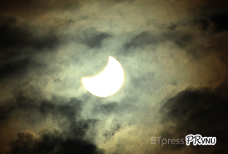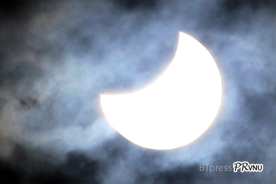 Lúc 7 giờ 20 phút, mặt trăng đang "đi vào" đĩa mặt trời |