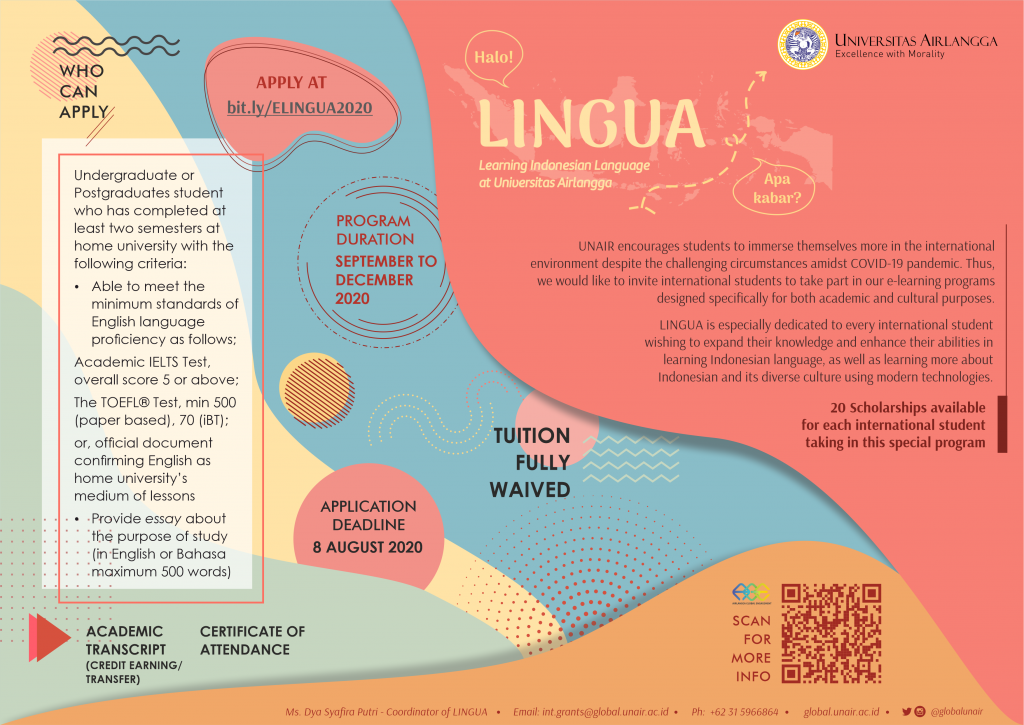 4. Learning Indonesian Language at Universitas Airlangga (LINGUA), xem chi tiết tại đây.