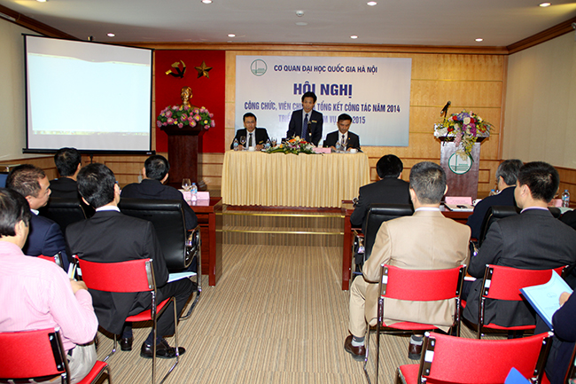 Phát biểu chỉ đạo Hội nghị, Giám đốc ĐHQGHN Phùng Xuân Nhạ ghi nhận và đánh giá cao những nỗ lực của cán bộ công chức, viên chức ĐHQGHN trong thời gian qua và đề nghị, trong năm 2015, khối Cơ quan ĐHQGHN cần khắc phục những tồn tại, hạn chế của năm vừa qua và tập trung vào 6 nhóm nhiệm vụ trọng tâm sau: