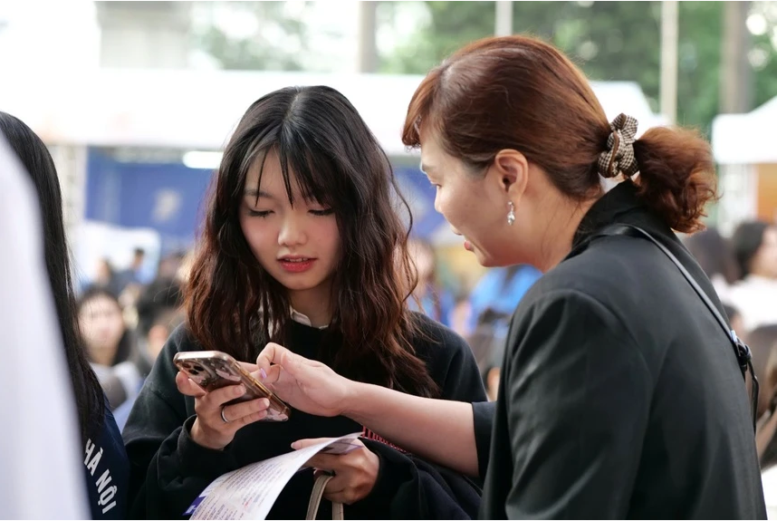 Sinh viên tham gia tuyển dụng tại ngày hội. Ảnh: Quốc Việt.