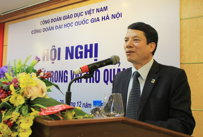 Đồng chí nhấn mạnh, hội nghị Cán bộ nữ trong vai trò quản lí của Công đoàn ĐHQGHN tổ chức có ý nghĩa tiếp tục khẳng định vai trò của nữ công đoàn viên đối với hoạt động quản lí, giảng dạy, nghiên cứu khoa học và các hoạt động phục vụ sự nghiệp giáo dục và đào tạo.