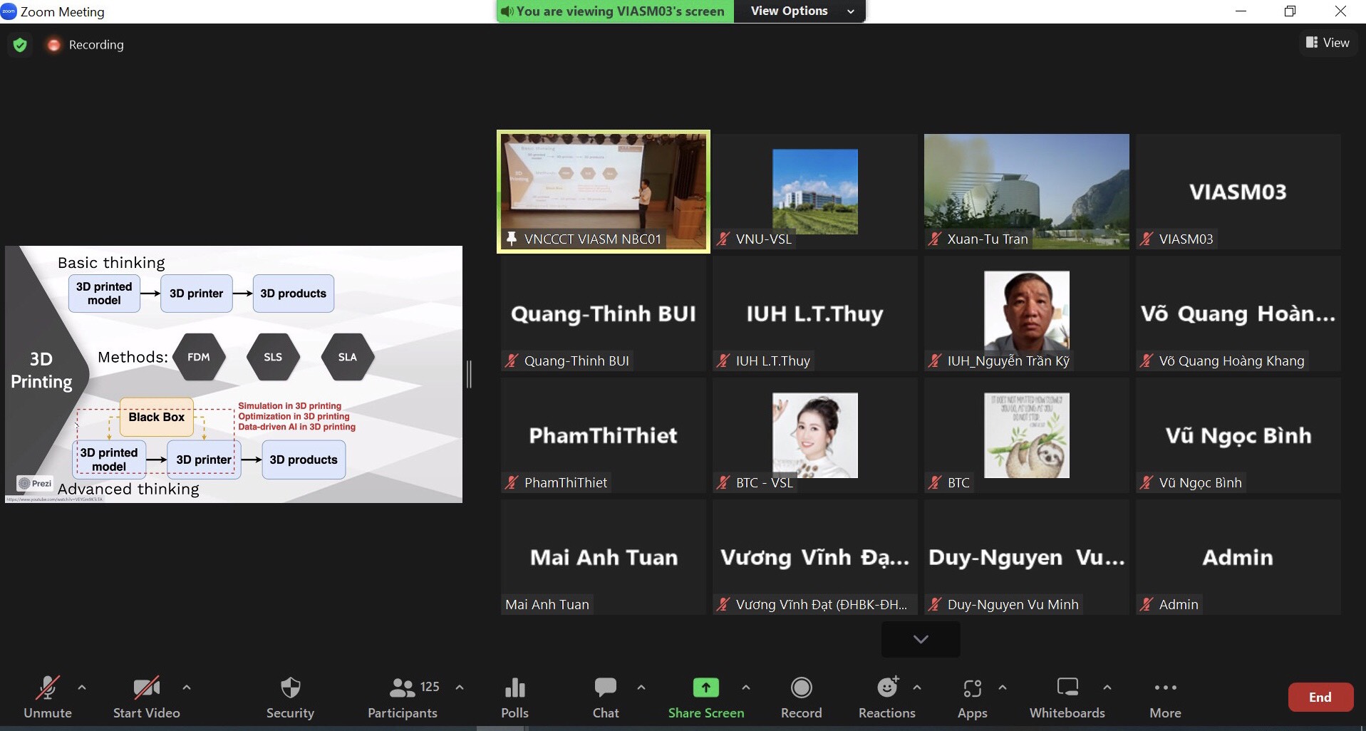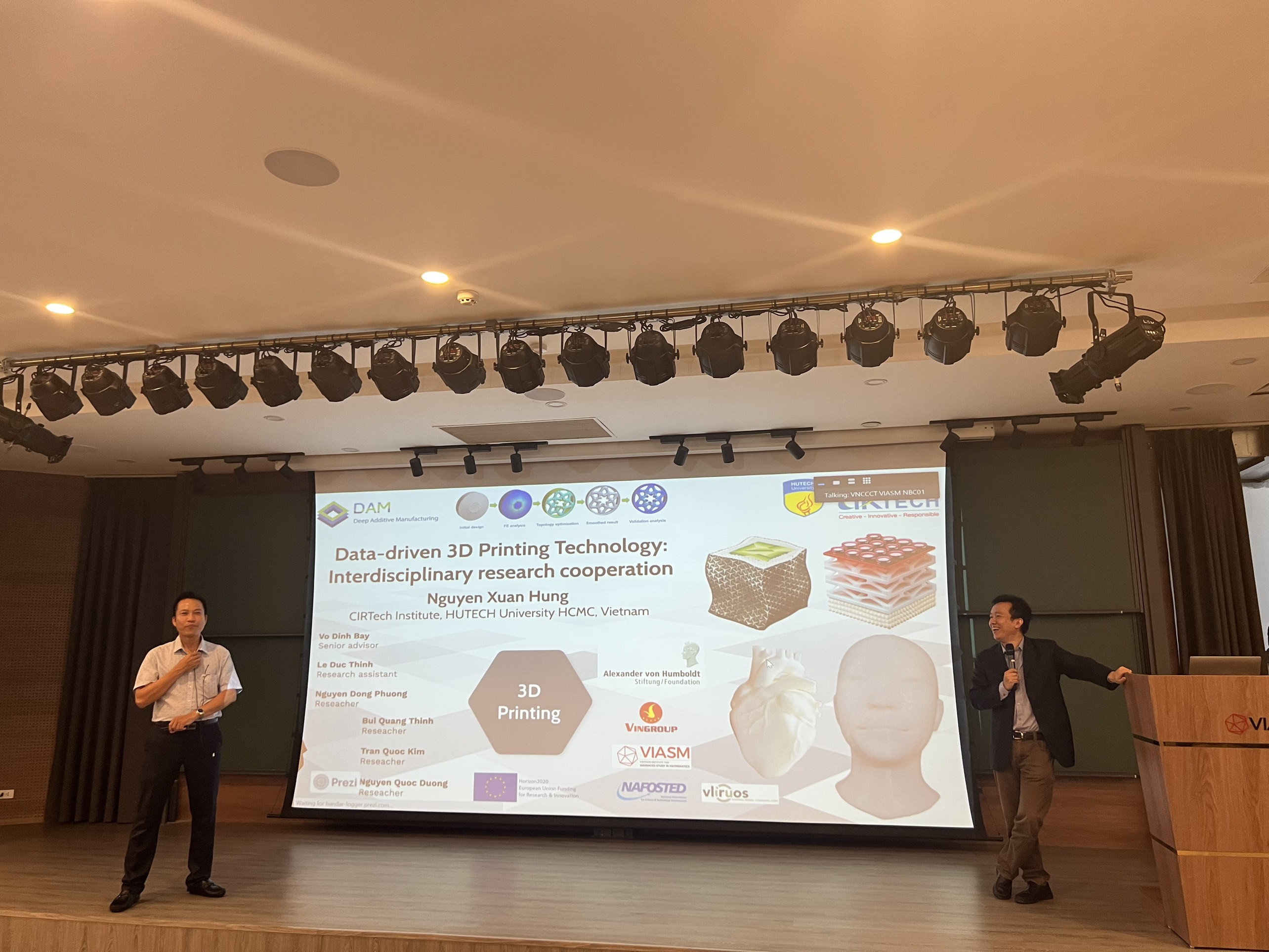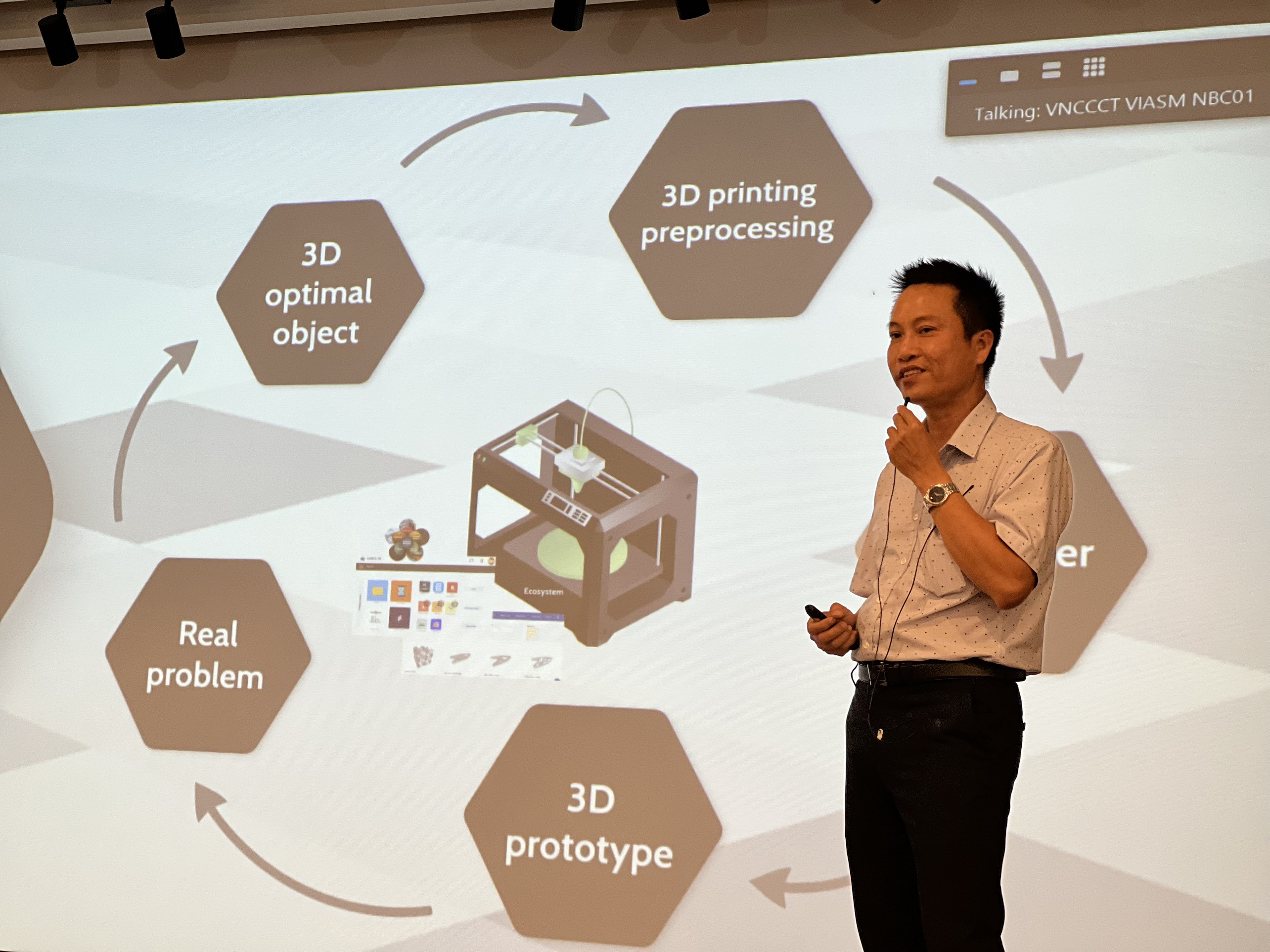 Trong bài giảng của mình, GS.TS Nguyễn Xuân Hùng (Trường ĐH Công nghệ TP.Hồ Chí Minh, Thành viên Hội đồng khoa học - Viện Nghiên cứu cao cấp về Toán, Chủ tịch Hội chuyên ngành Cơ học tính toán Việt Nam) đã cho công chúng một cái nhìn tổng quát về dễ hiểu về lịch sử ra đời của công nghệ in 3D, các kỹ thuật in 3D hiện nay đang được sử dụng, thị trường tổng hợp của in 3D trên thế giới, đồng thời một triết lý của giáo sư về quá trình phát triển kiến thức và kinh nghiệm trong lĩnh vực in 3D. Triết lý này của giáo sư Hùng là một mối liên kết động bao gồm năm bước: (i) Vấn đề thực tế, (ii) cấu trúc 3D tối ưu, (iii) tiền xử lý cấu trúc, (iv) in 3D, và (v) dựng nguyên mẫu, trong đó vẫn còn tồn tại một khoảng cách giữa nguyên mẫu và vấn đề thực tế đòi hỏi người làm công nghệ in 3D cần phải nỗ lực hơn nữa.