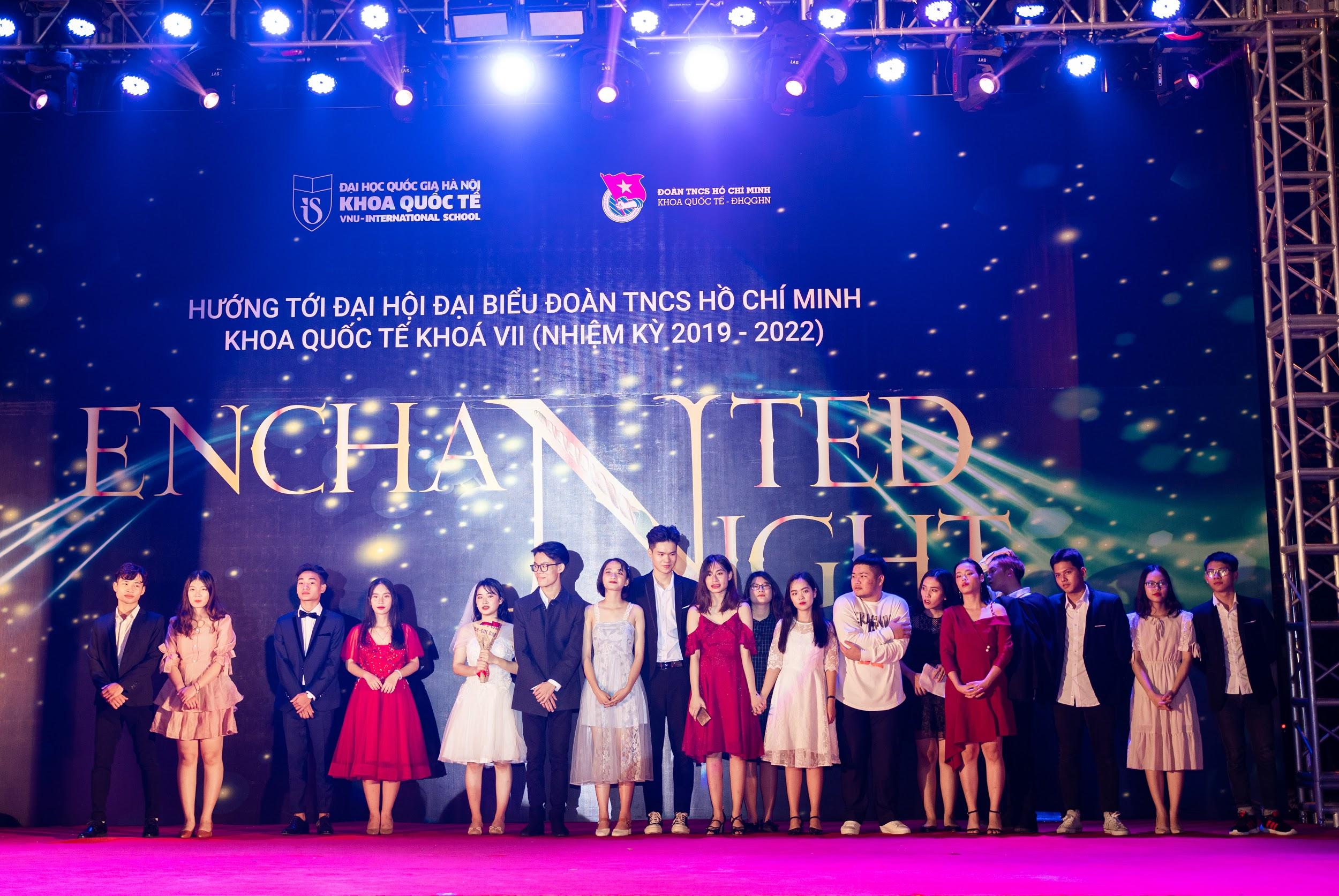 Dạ hội “Enchanted Night” là tâm huyết của Đoàn Khoa Quốc tế với mong muốn đem lại một dạ hội chào tân sinh viên mang đậm chất VNU-IS, khơi dậy tiềm năng và tôn vinh bản sắc riêng của sinh viên Khoa - năng động, sáng tạo và hội nhập quốc tế; đồng thời tạo cơ hội để tân sinh viên giao lưu và hoà nhập, nâng cao tinh thần đoàn kết và gắn bó giữa tân sinh viên và sinh viên, cán bộ, giảng viên.