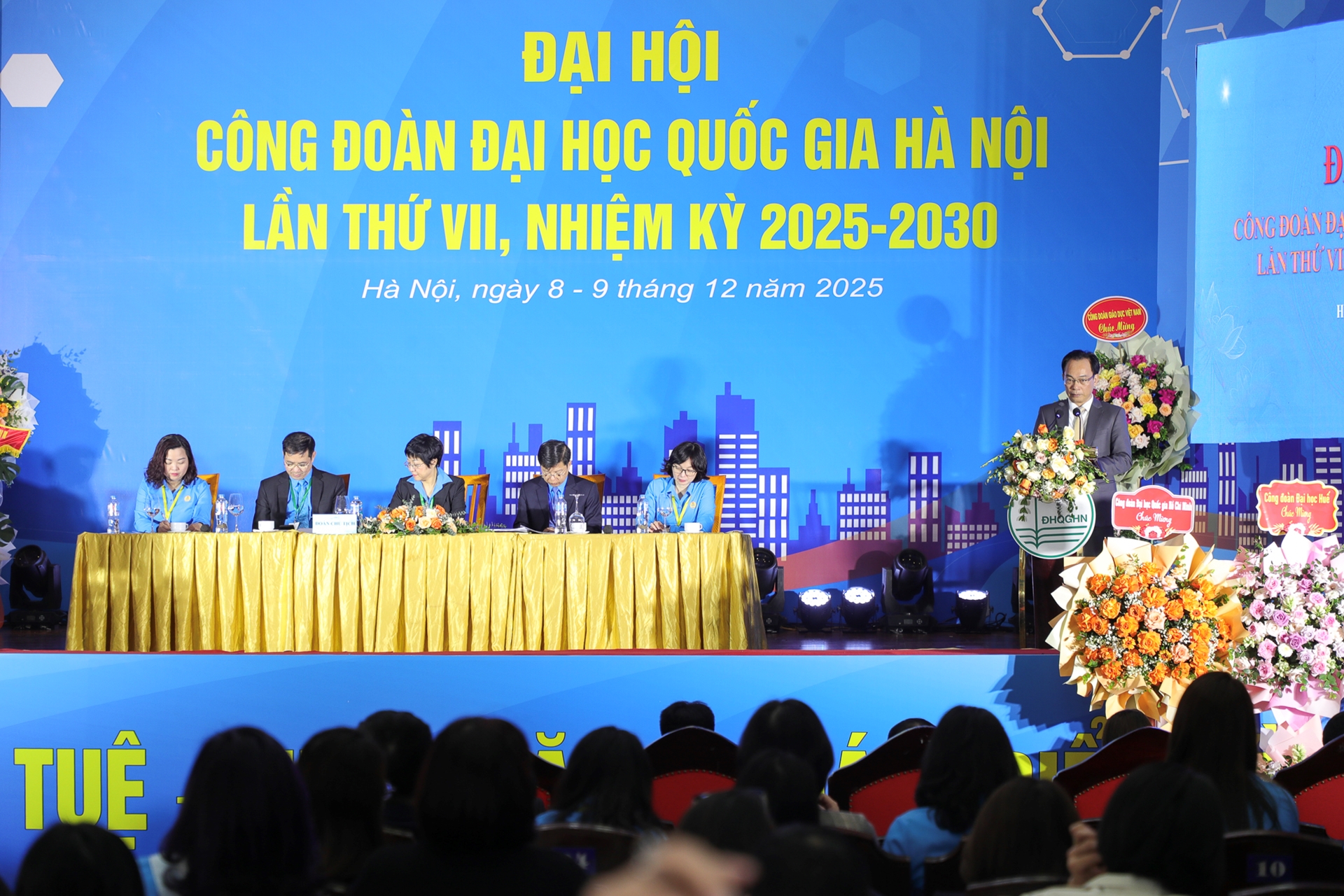 Cùng dự Đại hội có các Phó Giám đốc Nguyễn Hiệu và Đào Thanh Trường; lãnh đạo Văn phòng, Khối Đảng Đoàn thể, các ban chức năng cùng đại diện thủ trưởng một số đơn vị thành viên, trực thuộc ĐHQGHN và nhiều công đoàn các trường đại học, học viện trong cả nước.