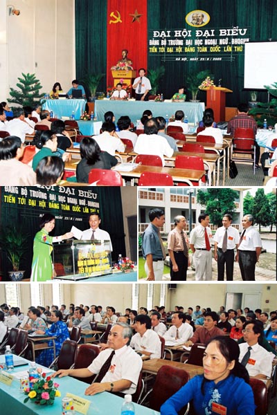 Đại hội đại biểu Đảng bộ lần thức XV của Trường Đại học Ngoại ngữ - ĐHQGHN diễn ra trong thời điểm có nhiều thuận lợi do có những chủ trương, chính sách mới của Đảng và Nhà nước về ưu tiên phát triển giáo dục - đào tạo và khoa học công nghệ cho đến năm 2010, sự ổn định về mô hình tổ chức của ĐHQGHN cùng với quy chế mới của ĐHQGHN do Thủ tướng Chính phủ ban hành đã tạo điều kiện thúc đẩy sự phát triển của ĐHQGHN nói chung và các trường thành viên nói riêng. Nhà trường đã nhận được sự chỉ đạo và đầu tư có hiệu quả nhiều mặt của ĐHQGHN. Từ đầu nhiệm kỳ XV (10/2003) đến nay, sau 20 tháng thực hiện Nghị quyết Đại hội Đảng bộ, với khẩu hiệu hành động “Trí tuệ, kỷ cương, hiện đại, chất lượng cao”, Nhà trường đã đạt được một số thành quả đáng ghi nhận. Hiện nay, Đảng bộ Trường ĐHNN có 219 đảng viên chính thức và 20 đảng viên dự bị sinh hoạt ở 15 chi bộ.