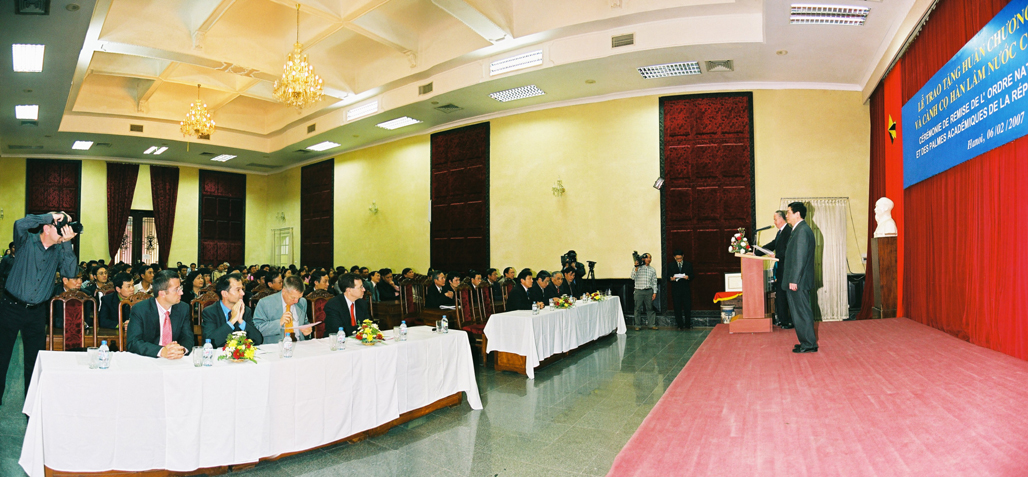 Thưa ông Giám đốc Đào Trọng Thi, với niềm vui lớn lao và niềm tin vững chắc vào khả năng của Đại học Quốc gia tại Hà Nội vượt qua những thách thức đó dưới sự dẫn dắt của ông, ngay bây giờ tôi xin hân hạnh trao tặng ông tấm Huân chương Quốc công./.
