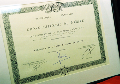 Chính vì quá trình hoạt động uy tín và thành công của ông, vì những việc mà ông thực hiện cho công tác giáo dục đại học tại Việt Nam và sự hợp tác của ông trong việc thiết lập các Trung tâm Đại học Pháp mà Chính phủ Pháp đã quyết định tôn vinh ông và thông qua ông tôn vinh Đại học Quốc gia Việt Nam tại Hà Nội.
