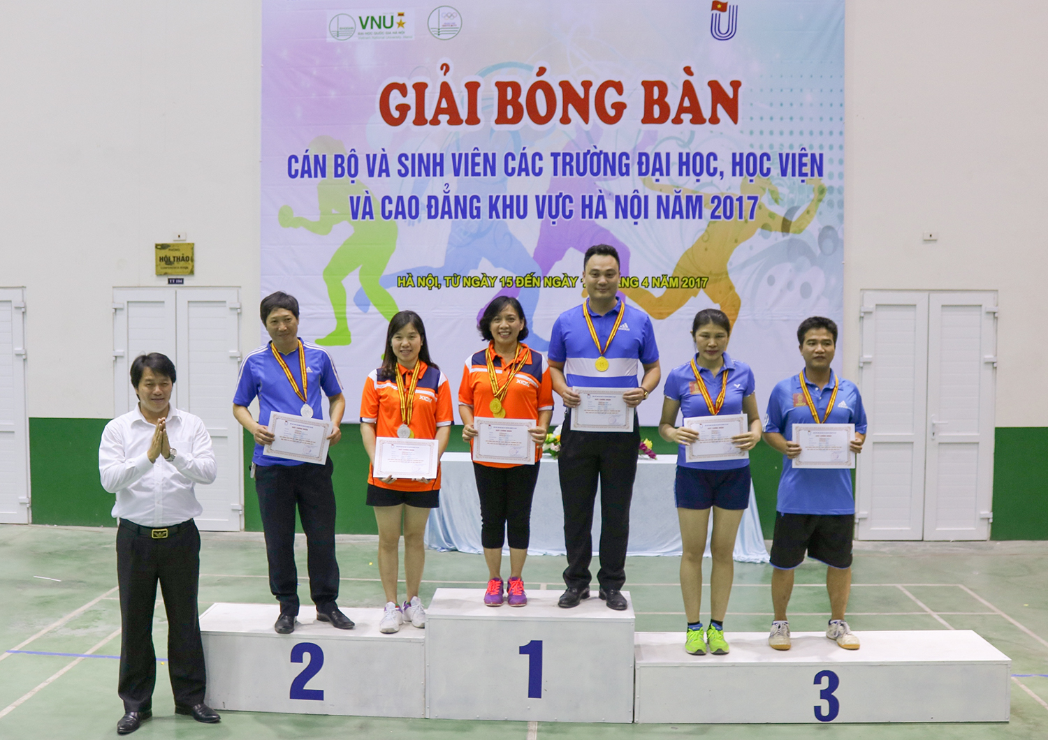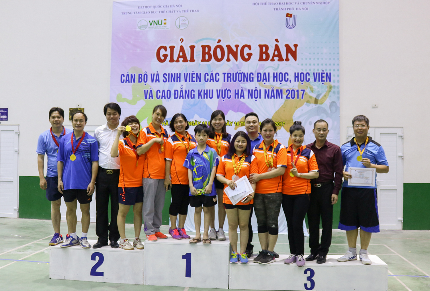 Khép lại 02 ngày thi đấu quyết liệt và sôi nổi của Giải Bóng bàn các trường đại học, cao đẳng và học viện khu vực Hà Nội năm 2017, các vận động viên Bóng bàn ĐHQGHN đã xuất sắc giành được 6 Huy chương Vàng, 3 Huy chương Bạc và 4 Huy chương Đồng, đứng thứ Nhất toàn đoàn ở nội dung dành cho cán bộ, cụ thể như sau: