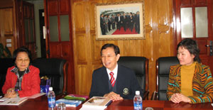 GS.TS Paitoon Sinlarat đã giới thiệu những nét khái quát về mô hình, cách thức đào tạo cũng như quy mô của Trường Đại học Dhurakij Pundit. Ông cũng bày tỏ mong muốn thiết lập quan hệ hợp tác với ĐHQGHN trong lĩnh vực quản lý giáo dục, đào tạo trao đổi sinh viên đặc biệt là tạo điều kiện để các nhà khoa học của cả 2 bên có thể giao lưu và tham gia các hội thảo chuyên môn... Tiếp đó, Phó giám đốc Vũ Minh Giang đã trao đổi với khách về tình hình chung của ĐHQGHN gồm bộ máy tổ chức, quản lý theo từng cấp; chương trình đào tạo; cơ sở hạ tầng; những mối quan hệ hợp tác với các tổ chức giáo dục, các trường đại học trong khu vực và trên thế giới cũng như đặc điểm loại hình đào tạo ở một số đơn vị mà phía bạn quan tâm.