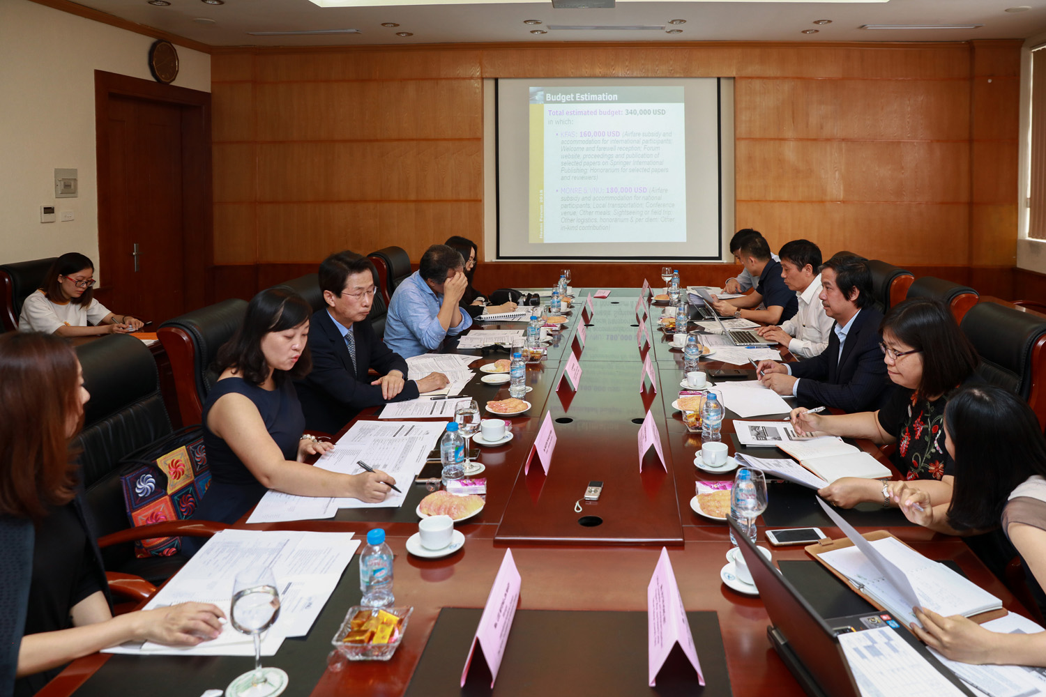 Tại buổi làm việc, hai bên đã cùng trao đổi về việc hợp tác tổ chức Diễn đàn Hà Nội 2018. Dự kiến, Diễn đàn có chủ đề “Biến đối khí hậu và phát triển bền vững”, sẽ được tổ chức vào tháng 12/2018 với khoảng 300 đại biểu tham dự, trong đó khoảng 50 đại biểu quốc tế. Trong thời gian diễn ra Diễn đàn, ĐHQGHN và Quỹ KFAS sẽ phối hợp tổ chức các hội thảo chuyên đề và tư vấn chính sách với Bộ Tài nguyên và Môi trường, thành phố Hà Nội.