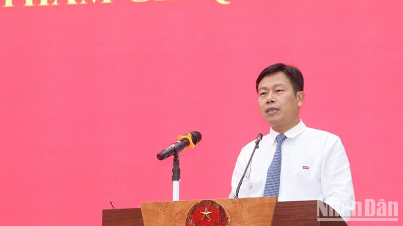 Giám đốc ĐHQGHN Lê Quân phát biểu khai giảng lớp bồi dưỡng, cập nhật kiến thức mới cho cán bộ lãnh đạo, quản lý thuộc diện Ban Thường vụ Tỉnh ủy quản lý và tham gia quản lý tại Quảng Ngãi (Ảnh: Báo Nhân dân)