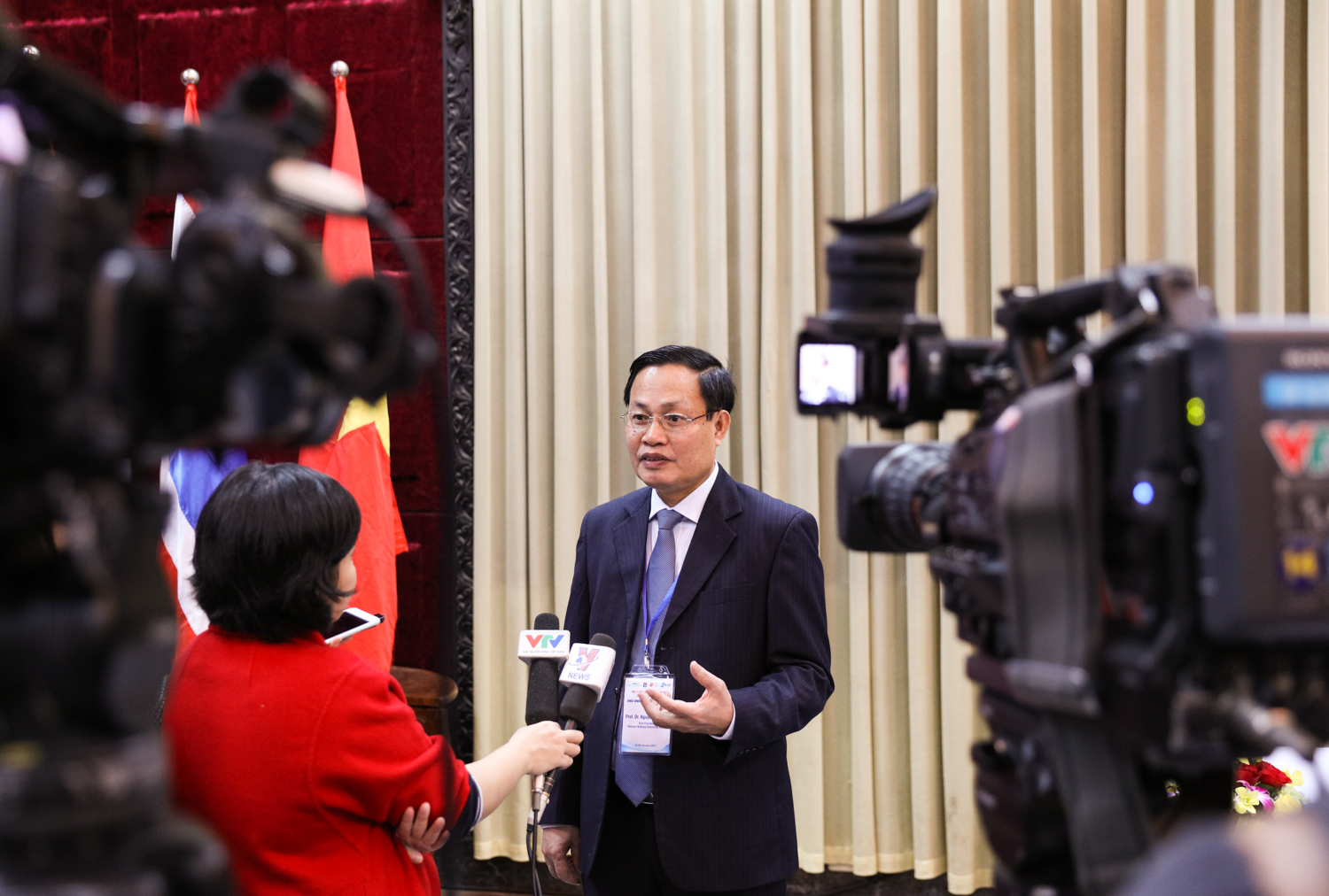 Phó giám đốc ĐHQGHN Nguyễn Hữu Đức trả lời phỏng vấn báo chí