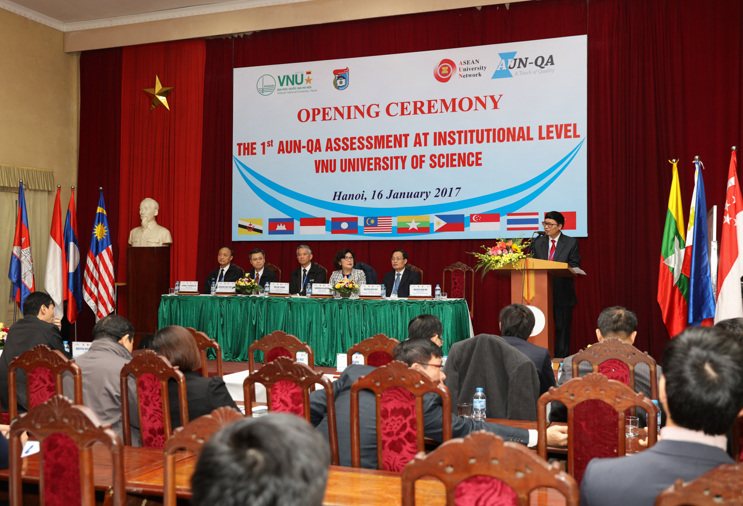 Phát biểu tại phiên khai mạc, Phó Giám đốc ĐHQGHN Nguyễn Hữu Đức nhấn mạnh, đảm bảo chất lượng luôn được ĐHQGHN coi là nhiệm vụ trọng tâm và ưu tiên. ĐHQGHN đã tổ chức tập huấn và hướng các hoạt động của các đơn vị thành viên như đào tạo, nghiên cứu, dịch vụ theo tiêu chuẩn AUN-QA. ĐHQGHN cũng ủng hộ, khuyến khích đơn vị đào tạo - Trường ĐH Khoa học Tự nhiên – đơn vị đầu tiên của ĐHQGHN và của châu Á đăng ký tham gia kiểm định.